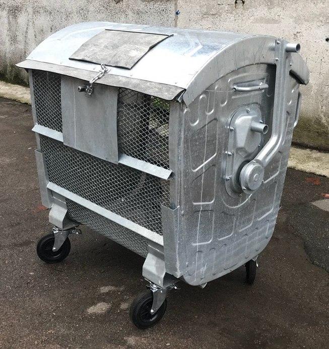 Металеві сміттєві сітчасті контейнери виготовлені методом штампування та та мають суцільні зварні шви, що гарантує міцність ємностей та їх довготривале використання. Баки облаштовані самонаправляючими колесами з гальмами. Завдяки гальванічному покриттю така ємність витримує вплив вологи та температури. На днищі обладнаний зливний пристрій, який дозволяє позбутися хімічних решток після очищення при санітарній обробці чи накопиченої вологи.